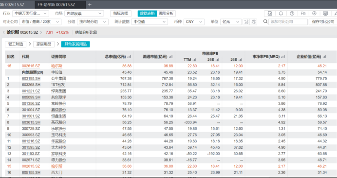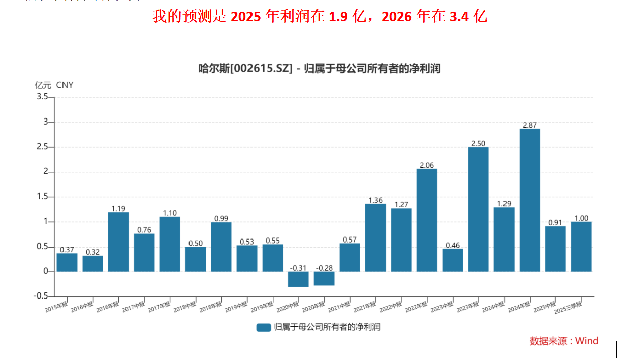 如果哈尔斯2025年赚得少(靠近1.4亿),那它的估值就偏贵了。
