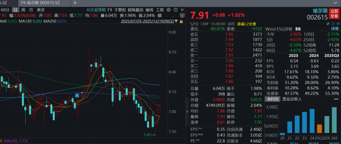 如果哈尔斯2025年赚得多(靠近3.5亿),那它的估值就挺便宜,有上涨空间。