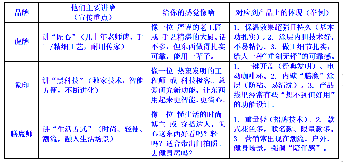 人设:本来不是专门做杯子的(乐扣是保鲜盒,特美刻是代工其他品类),但看到市场好,就凭借自己的品牌口碑和渠道杀进来。