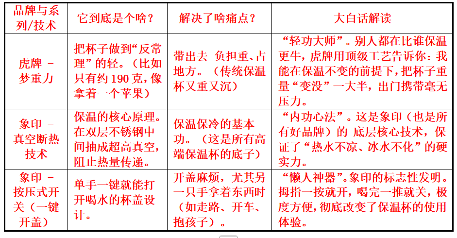 1. 技术立派:象印的电热、虎牌的涂层工艺、Yeti的极致保温,都是护城河。