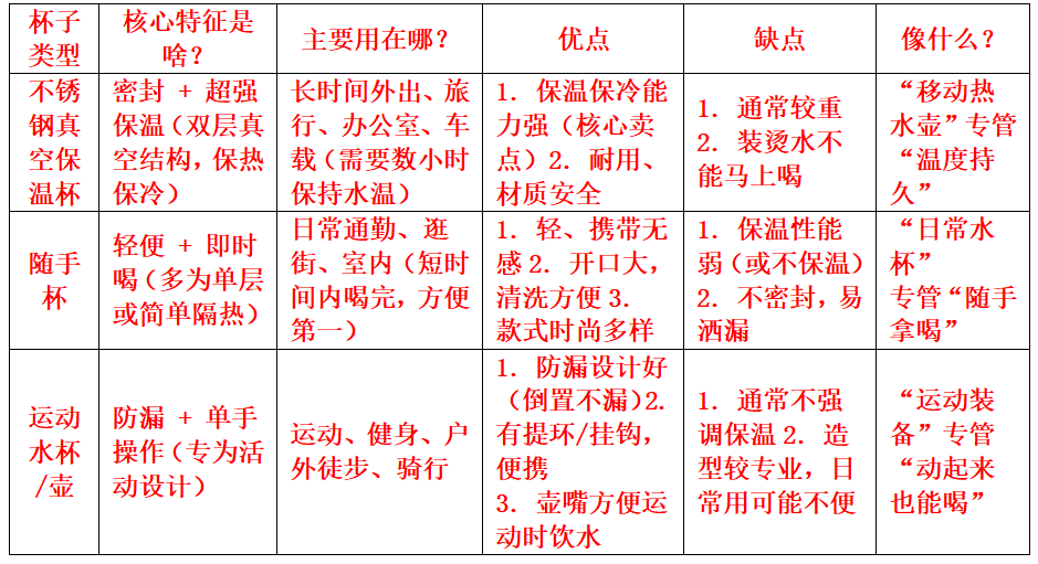 大众实用/性价比赛道:杯子是“用品”,卖的是实惠、可靠和功能。