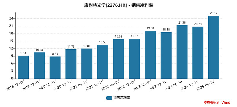 毛利率(卖一件产品,扣除直接成本后剩的利润比例):2025年上半年高达 40.98%,未来预计稳定在41%左右。为啥这么高?因为它卖的高端薄镜片、定制镜片利润特别厚(毛利率超50%),这些好东西卖得越多,整体利润就越肥。
