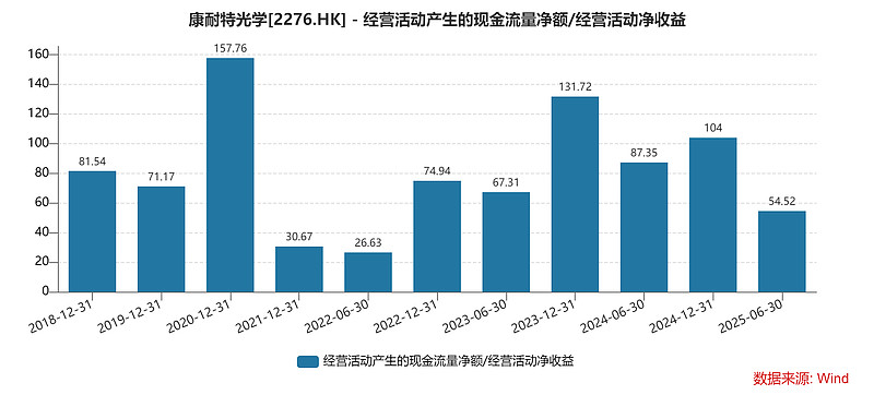 1. 经营现金和净利润比值单季度有点差:最好是在100以上