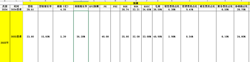 净利率(最终落到口袋的利润占收入的比例):预计从2024年的20.78%,提升到2025-2026年的22%-24%。这说明公司在控制运营、销售、管理等其他费用上也做得不错。