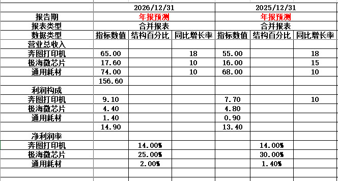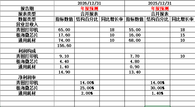 2025-2026年,正是这个故事从"低谷反转"走向"高光时刻"的关键转折期。利盟的剥离是"刮骨疗毒",短期很痛,长期很爽。奔图和极海微的双轮驱动,既是国产替代的“政治正确”,也是实打实的“业绩增长”。