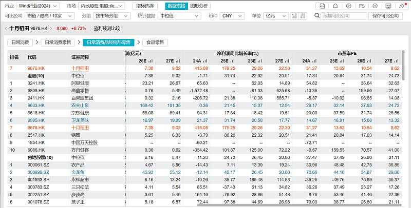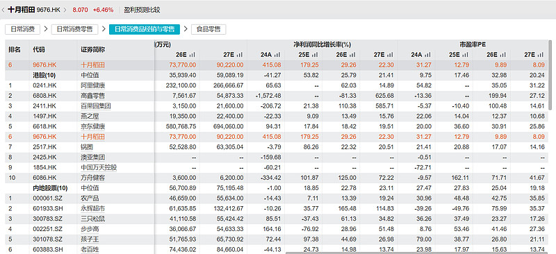 这是最劲爆的部分!您想想,同样卖吃的,卫龙辣条、农夫山泉、金龙鱼这些公司,市场给它们的估值是2025年平均27.9倍PE,2026年22.5倍PE。可十月稻田呢?按调整后净利润算,2025年才12.3倍,2026年10.1倍!