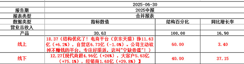 2025年上半年线上收入18.37亿,占总收入60%左右,同比+3.4%。看着增速慢,但质量高了!