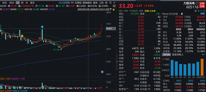 力鼎光电:2026年PE 40倍,PB 5.85倍。