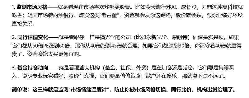 现在PE 40-47倍,不算便宜。如果市场风格从成长股转向价值股(比如都去炒银行、煤炭),股价可能跌20-30%,哪怕业绩再好也扛不住。