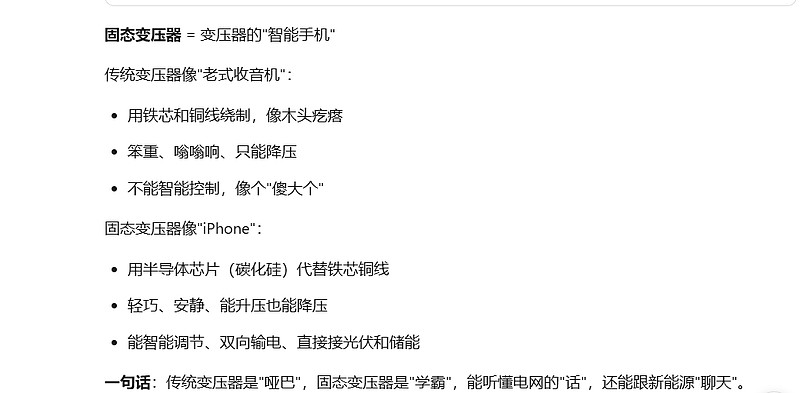 发展方向:SST技术被认为是"GW级AI数据中心的终极能源方案",这是下一个爆炸点。就像"从做普通变压器转向做AI数据中心的专用能源设备"。