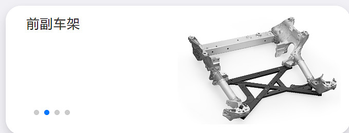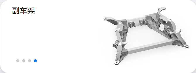 (1)底盘系统副车架:副车架是悬挂连接部件与车身之间的一种装置,作用是阻隔振动和噪声,减少其直接进入车厢,对车辆的舒适性、操控性有重要作用。