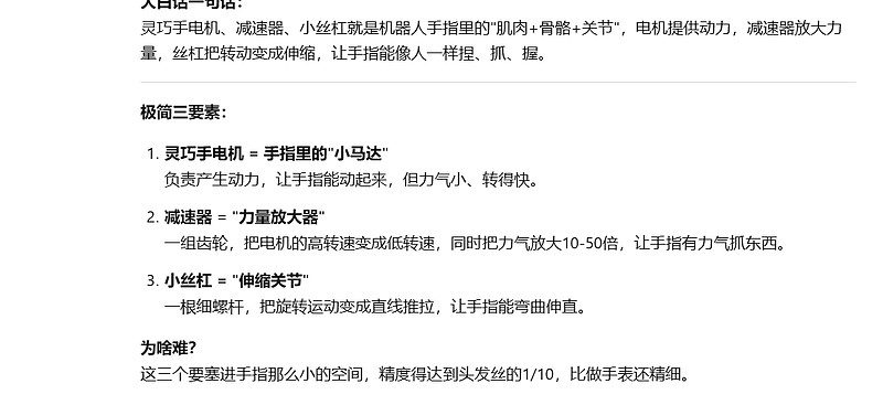 灵巧手电机、减速器、小丝杠(机器人的"手指")
