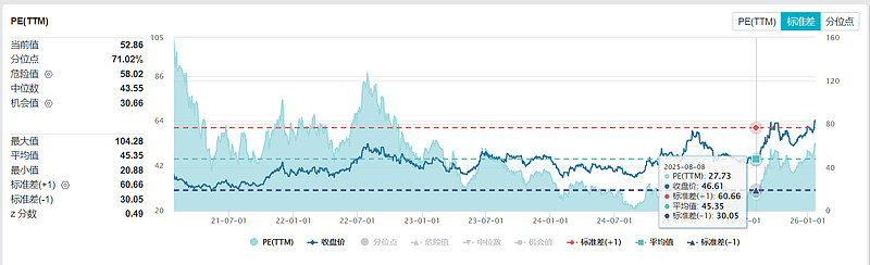上面的图是TTM市盈率,基本上对方增速也就在15-20%之间,2025年8月份,即使增速在20%的情况下,2025年的PE在22倍,2024年8月份的话,增速15%,2024年PE在17倍