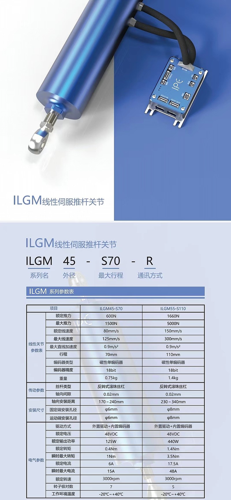 • 一体化集成设计:集成自研谐波减速器、双绝对值多圈编码器、摩擦式制动器及无框力矩电机,实现 “高精度 + 高响应 + 高负载” 的统一。例如,中空一体伺服关节模组通过嵌套式双码盘结构,编码精度提升至 23 位,支持单路 / 双路模式切换,适应复杂电磁环境。