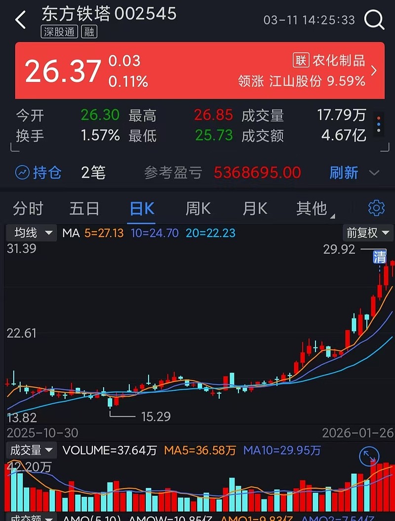 $东方铁塔(SZ002545)$ 最近清仓了铁塔,还有去年的股友和我一起冲润邦股份啊?虽然不太可能建仓到清仓有个4倍收益,但是稳稳的8块到12块,来个50%应该问题不大哦,估计时间3个月左右吧,信我? $润邦股份(SZ002483)$ @大湖爱投资 @LSCSL @文史馆