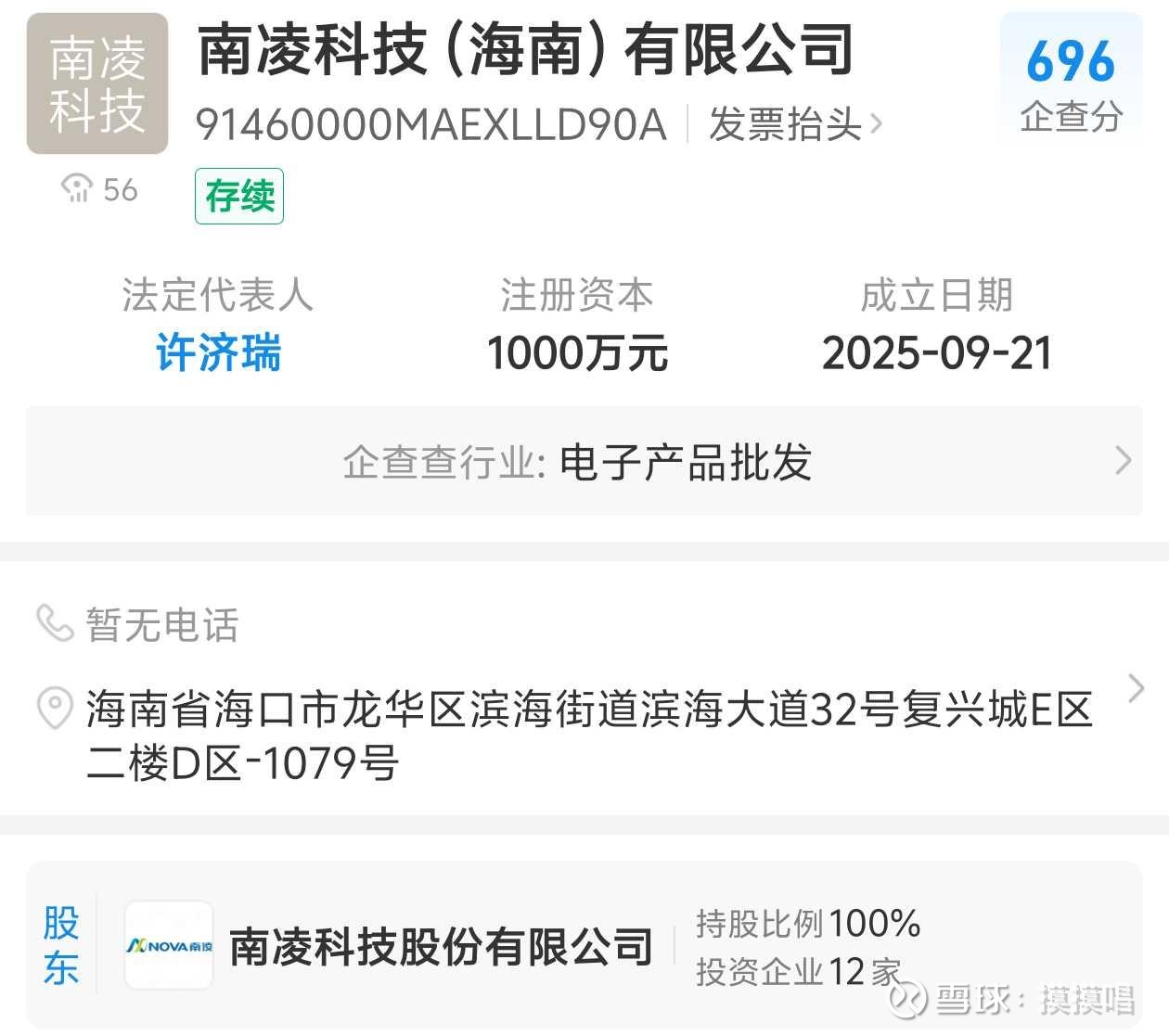 海南更是重头戏!25年9月21日成立了南凌科技(海南)有限公司。