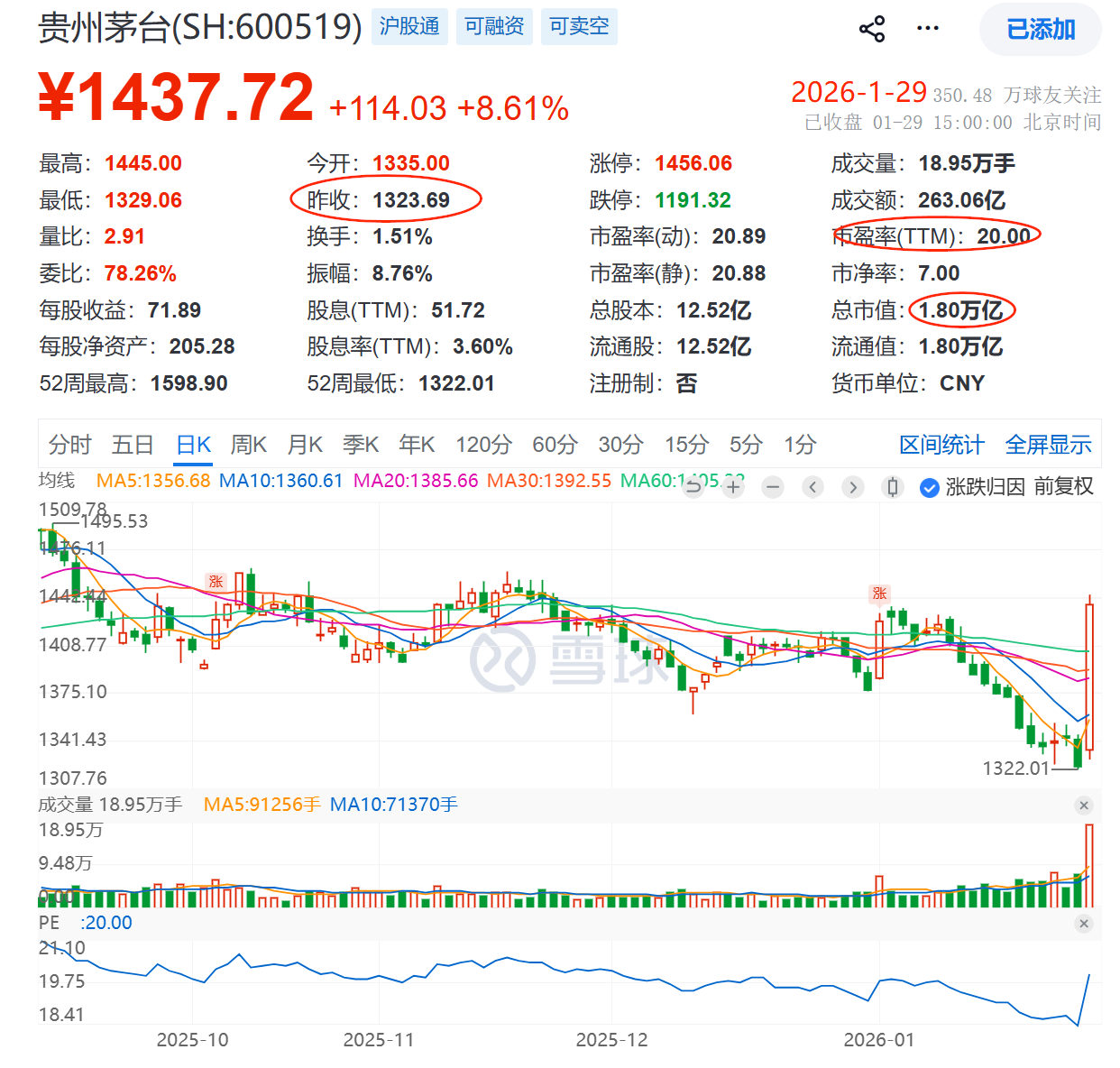 茅台 ttm 20pe
