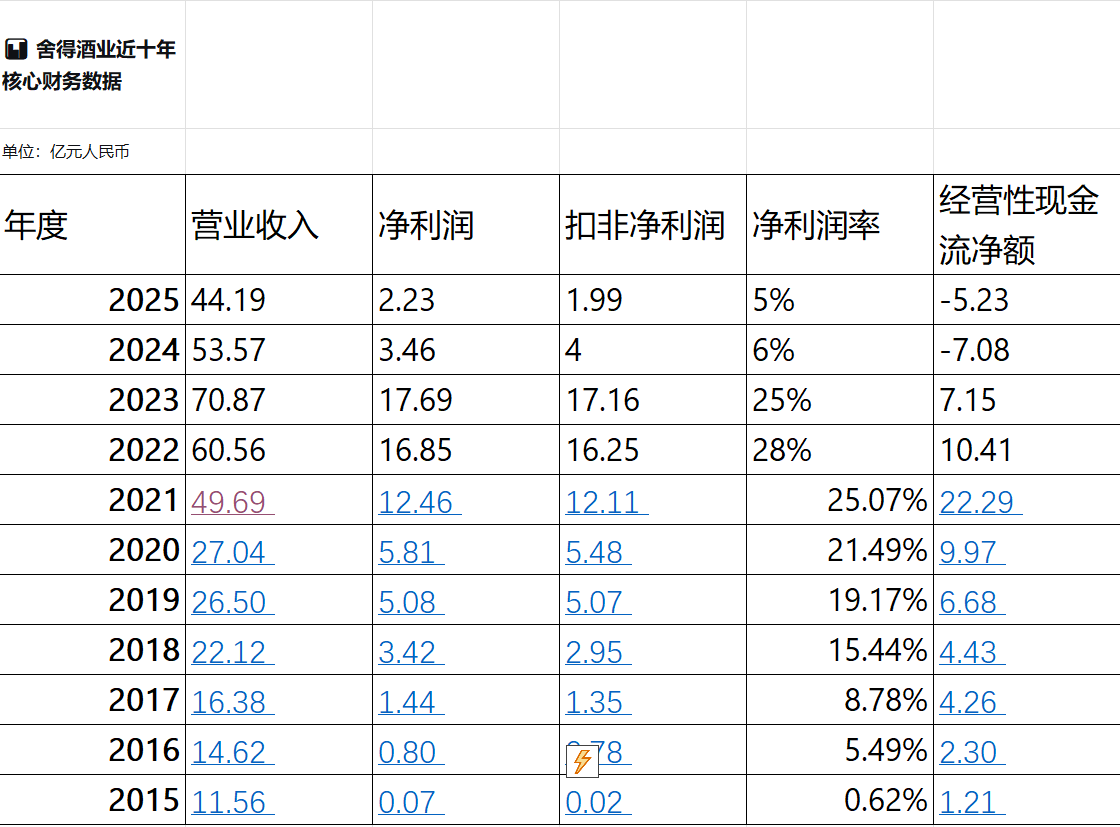 2025年舍得酒业的业绩: