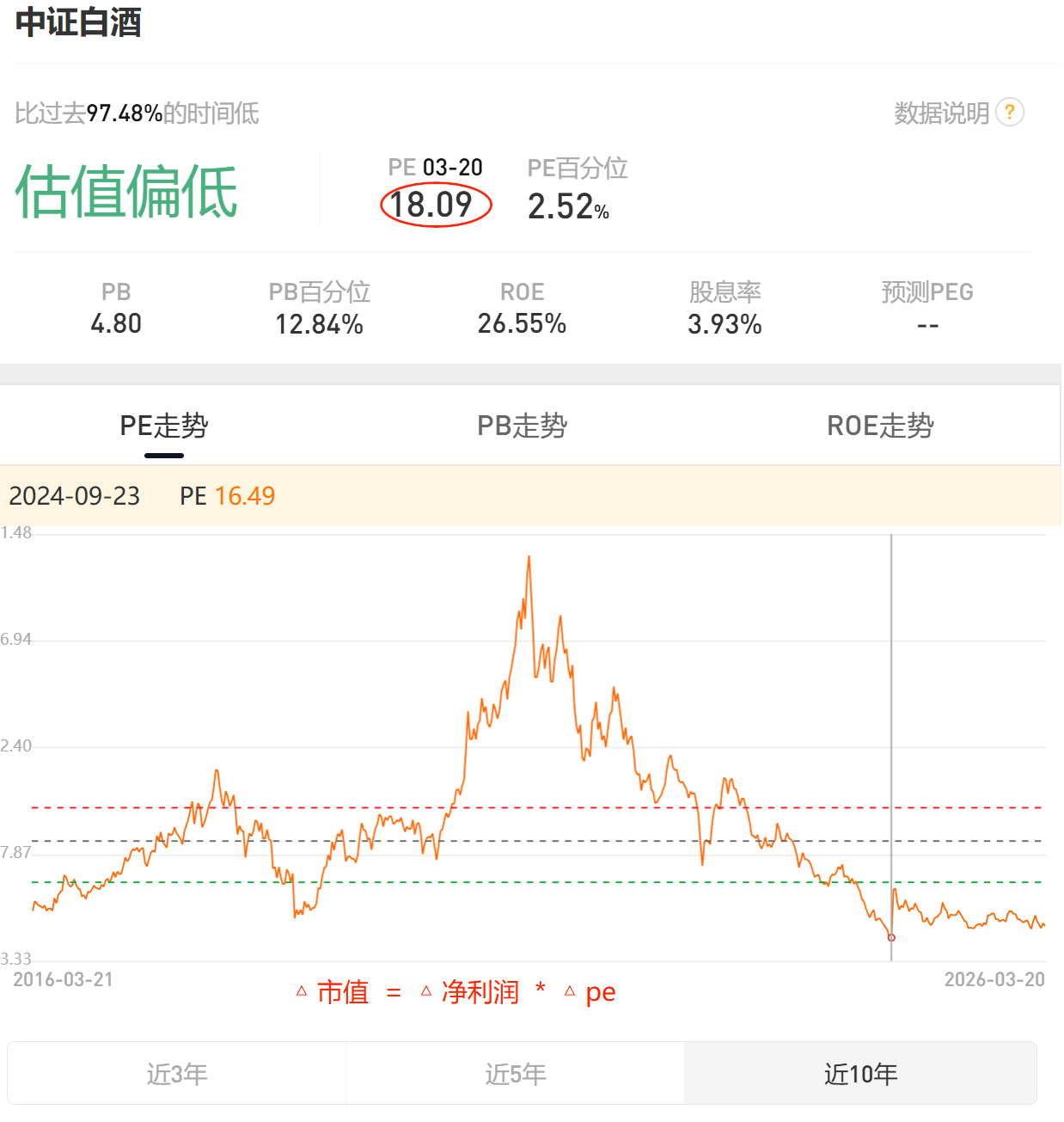 3. 假设中证白酒 可持续盈利 打七五 折;当下 真实 pe 18.09/0.75=24.1pe; 不贵。