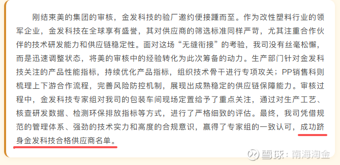 2、公司着力于高端聚丙烯产品的开发与生产,特别是抗冲共聚聚丙烯系列产品(如EP300H、EP548R等)已达到国内同类产品的先进水平。这些产品已通过REACH、ROHS及美国FDA认证,应用于汽车改性、家电改性、新能源电池封装等高附加值领域。与金发科技、道恩高分子等头部企业建立合作,并正与海尔、美的等知名厂商进行产品测试。金发与美的已经通过审核,进入合作供应商。
