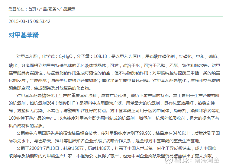 5、公司年产1.5万吨对甲基苯酚,对甲基苯酚(p - 甲酚)是正性光刻胶核心原料,主要用于合成线性酚醛树脂。正宗光刻胶原料概念