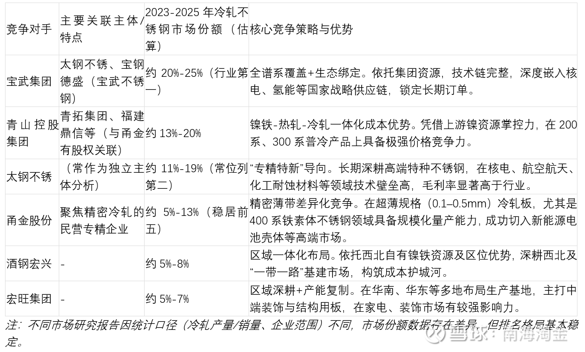中国冷轧不锈钢行业市场集中度持续提升,已形成以大型国有钢铁集团与头部民营企业双轮驱动的竞争格局。甬金股份处于行业第一梯队。