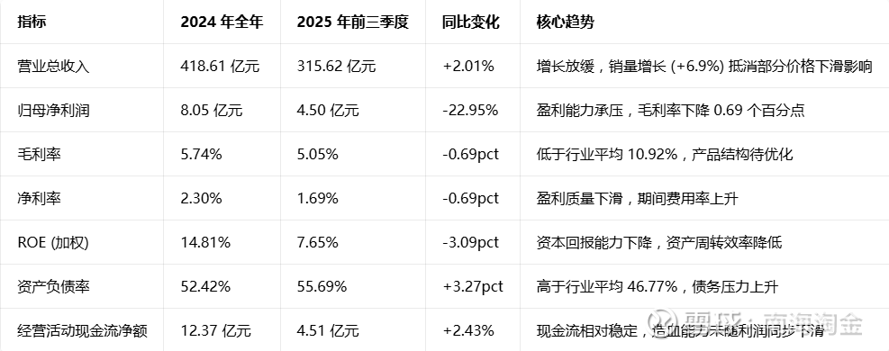 2025 年盈利下滑:前三季度净利润同比下降 22.95%,主因镍价上涨 (2025H1 同比 + 15%) 导致成本上升,2024年同期包含约1.27亿元的一次性搬迁补偿收入,以及行业需求疲软带来的产品价格压力。