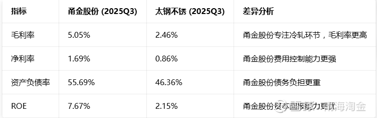 2025 年前三季度公司营收 315.62 亿元,位列行业第三;净利润 5.35 亿元,位列行业第五。与太钢不锈等全产业链企业相比,甬金股份更专注于冷轧加工环节,具有 "轻资产、高周转" 的特点,但也面临原材料价格波动和下游需求变化的双重影响。