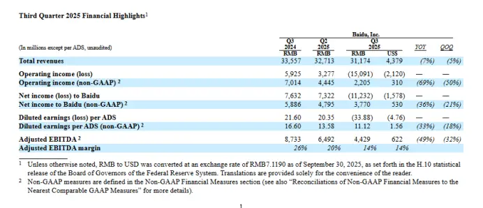 2025年第三季度财报显示,百度总营收达到312亿元,核心业务收入为247亿元。其中,AI云收入同比增长33%;AI应用收入达26亿元;AI原生营销服务收入同比增长262%达28亿元,凸显了AI技术在商业化应用中的潜力。