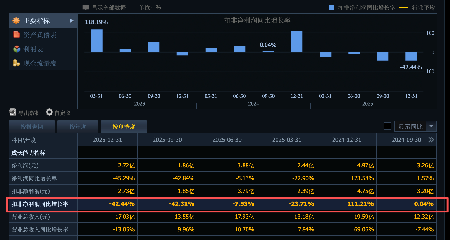 连续4个季度的扣非利润都下降,财务压力还是在增加,有上一年度高基数的因素,也有基本面自己的压力,现在需要关注的是2026的Q1数据,是否继续下降,主要是扣非,这个看利润质量。