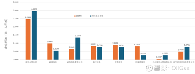 令人不解的是岭东核电,度电利润在度电价格下降7.5%的情况下,度电利润反而从2024年全年的6.49分上升到13.48分。即使用营业利润,度电利润也在12分以上。无法理解