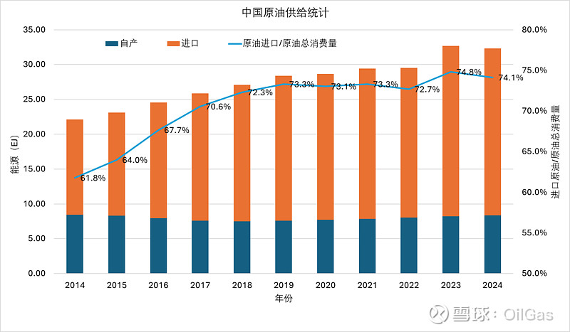 更为严峻的是,中国对外石油、天然气依存度在过去十年里并未显著改善——即便在“七年倍增计划”(自 2019 年起加大油气勘探开发投入)背景下亦然。在现实条件下,无论情感上愿不愿意,与俄罗斯和伊朗的深化合作可能成为最具可行性的选择。