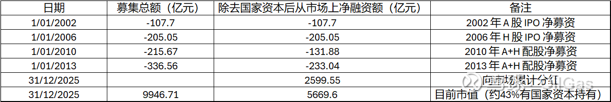 也就是说,单从普通股市场这个口径看,建设银行这些年通过分红回到市场的钱,已经远远超过了它当年从市场拿走的钱。