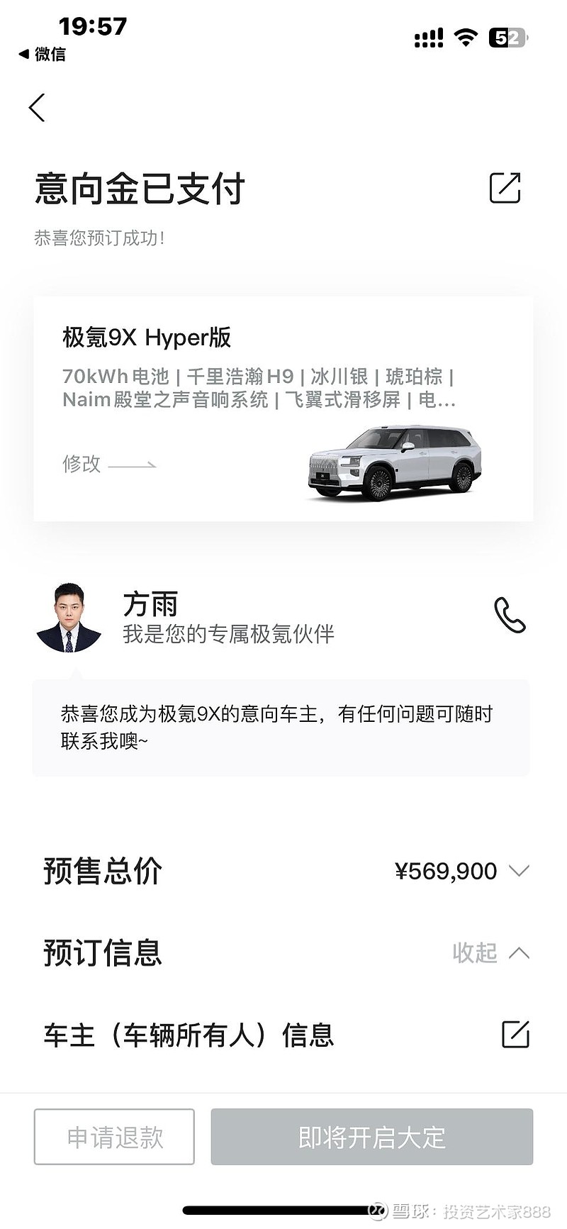 真正打动我的是银河9M,选装后的顶配才25万,完全豪车的感觉,我儿子也极力赞同,lp觉得买车应该越买越贵,否则会让人觉得你越混越差,买极氪9x已经算降级了。25万的车以为是我家保姆的。
