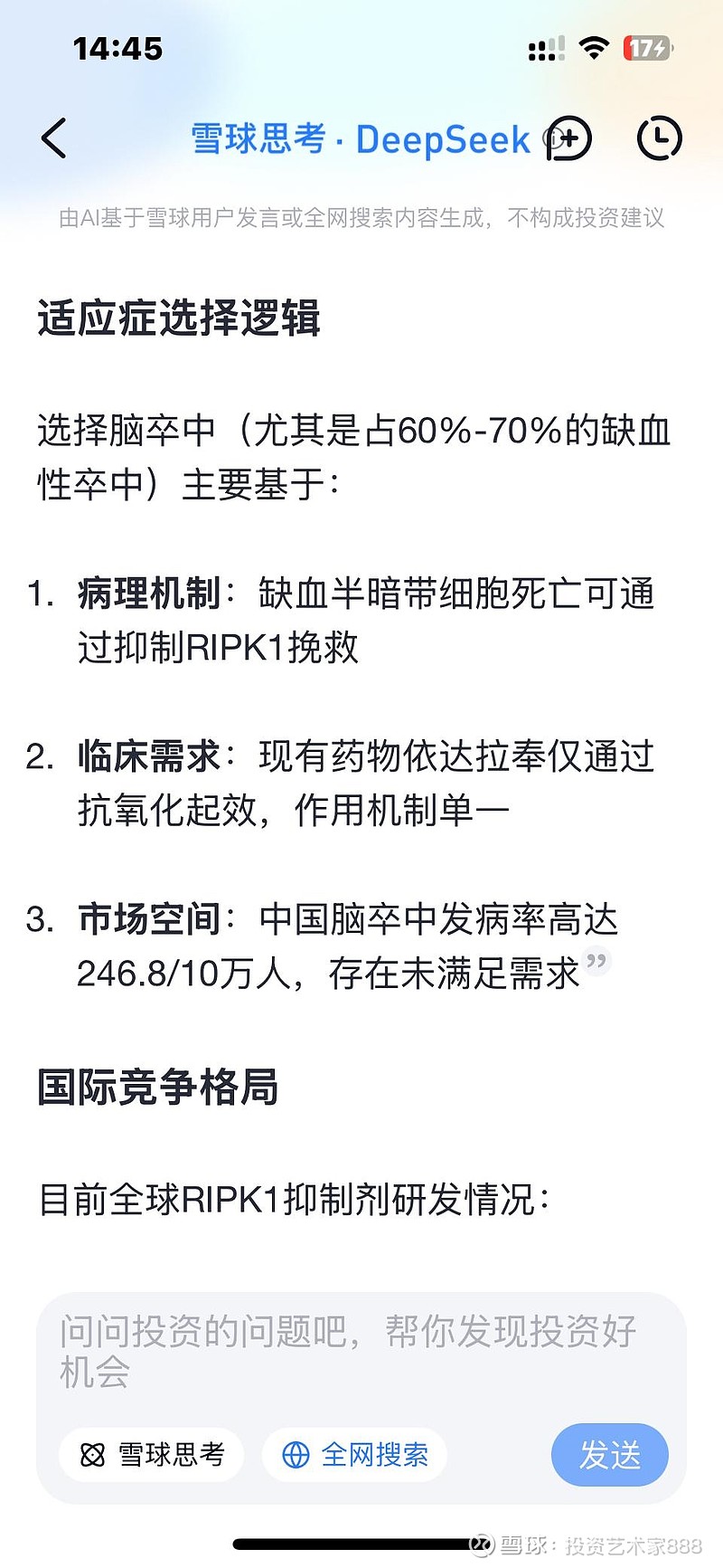 脑卒中现在是中国危害生命最严重的疾病之一,目前发病率260/10万,每年近四百万人,随老年化发病率还在提高,发病后即使抢救过来,生活质量也大大下降。给家庭社会个人造成极大负担。绿叶制药避开RIPK1的炎症红海,独立开发针对脑卒中的新药,是战略上高明之举。所以秘而不宣多年。现在已经成药申请专利才露出峥嵘。
