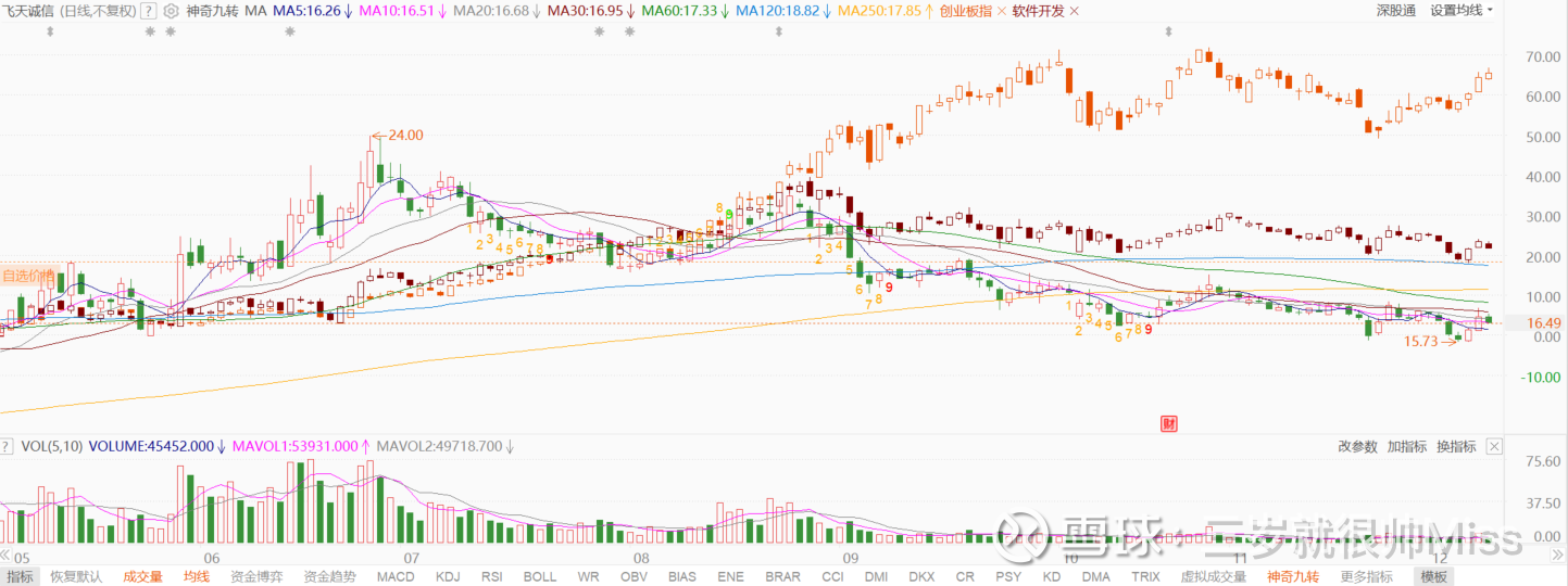 买了飞天诚信一段时间,虽然没有亏损太多,但是利润从+20%掉到了-10%,还是从技术面分析下。