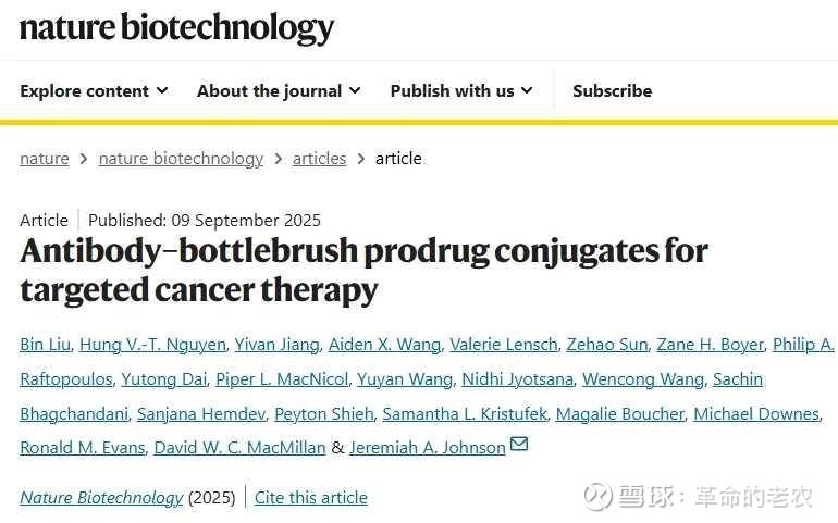 不过,最近,2025年9月9日《Nature Biotechnology》发表的“Antibody–bottlebrush prodrug conjugates for targeted cancer therapy”研究,为ADC带来了变革性突破。研究团队设计出“抗体 - 瓶刷前药偶联物”(ABCs)这一全新技术平台,它如同为“生物导弹”换装了可自由定制的“多功能集装箱”,打破了载弹量的限制,开启了靶向治疗的无限可能。