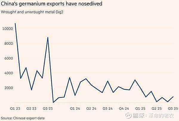 《金融时报》指出,自2024年年底起,中国锗出口量开始急剧下降。与稀土元素一样,锗在全球范围内并非绝对稀缺,但其开采与提炼在经济和技术层面极具挑战,通常只能作为锌和煤灰的副产品产出。俄罗斯曾是西方重要的锗供应国,但自俄乌冲突爆发后,西方对俄的制裁导致锗供应出现短缺。