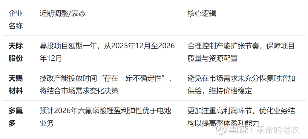 三家主要六氟磷酸锂企业的战略调整呈现出明显共性,反映了行业从粗放扩张到精细化运营的转变。以下是它们的主要调整及逻辑: