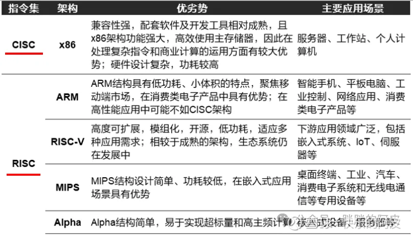 CPU各种架构的优缺点和使用场景,如下图: