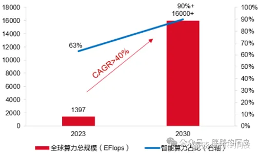 2023-2030算力复合增速40%、智能算力占比90%。