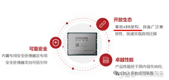 海光 CPU 系列产品兼容x86 指令集以及国际上主流操作系统和应用软件,软硬件生态丰富,性能优异,安全可靠,已经广泛应用于电信、金融、互联网、教育、交通等重要行业或领域。海光 DCU 系列产品以 GPGPU 架构为基础,可广泛应用于大数据处理、人工智能、商业计算等应用领域。