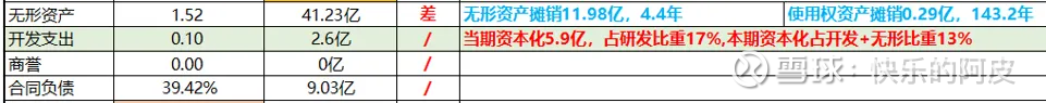 无形资产41亿是比较高的,2024年无形资产摊销了12亿,也非常的多,主要就是从AMD获取的专利技术等,在使用寿命期间进行摊销计提,再过4年就计提完了,后面专利到期就应该用自己技术迭代的X86,2024年资本化了5.9亿,占当前研发费的17%,还算可以,商誉基本没有,合同负债9亿还凑合。