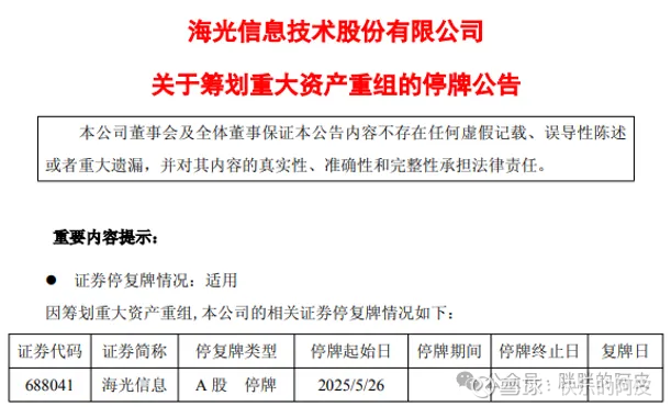 2025.05月,海光筹划重大资产重组,合并母公司中科曙光。
