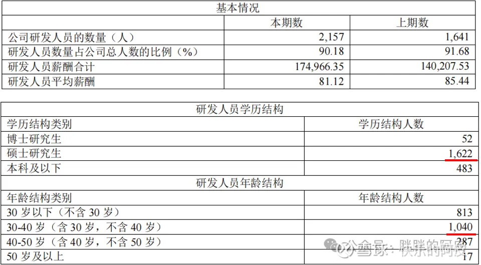 研发人员占比90%,其中研究生占比75%左右,30-40岁之间人员占比50%,都是高尖端人才且有丰富工作经验的人才。
