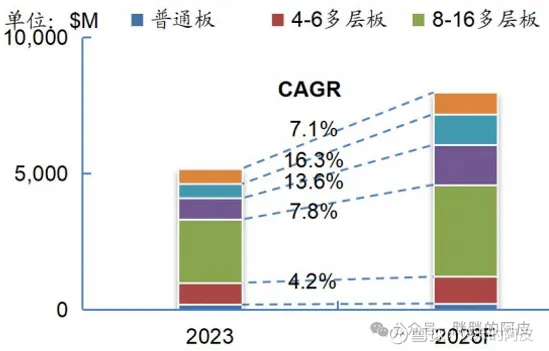未来8层以上的多层板市场占比会进一步扩大,复合增速13.6%。