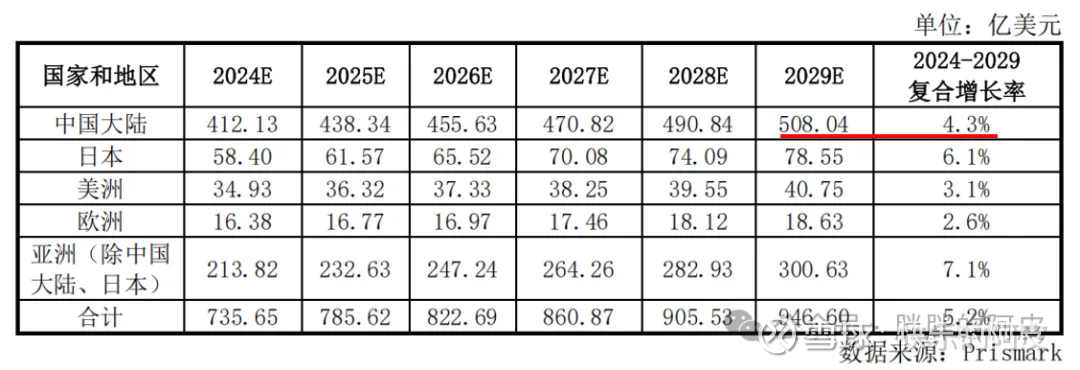 预测PCB的未来的市场容量,中国规模遥遥领先,如下图: