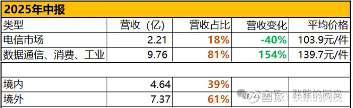随着2025年数通市场的占比提升 ,营收2025年出现了大幅增长;
