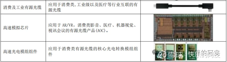 应用于数据通信、消费及工业互联市场的产品包括用于数据中心内部互联的传输光模块、数通光模块,无源预端接跳线,以及各类有源光缆(AOC)和铜缆(DAC、ACC、AEC),速率范围覆盖 10G-800G,用于消费、工业以及医疗等行业互联的高速有源光缆以及广泛应用于各种有源光缆及各类处理器接口的芯片、模组组件等;