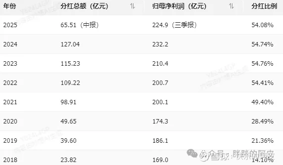 这些年公司的分红比例保持在55%左右,还是不错的。
